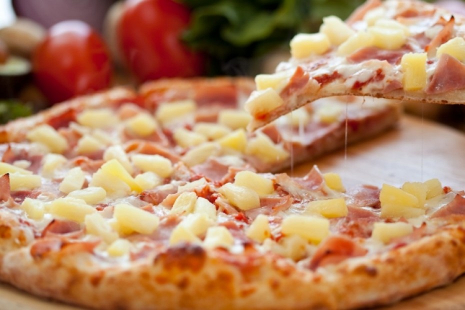 Sauce tomate, poulet, jambon, cantal (AOC), ananas, crème
